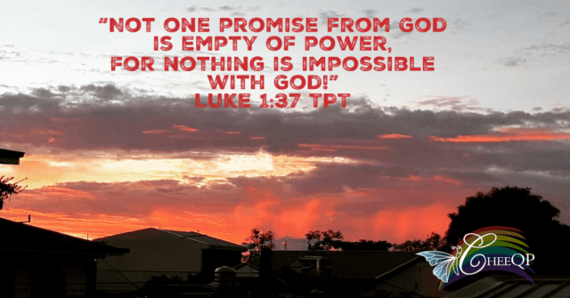 Every challenge has a corresponding promise that is hidden in His Word. For us to be able to walk out the promises of God by faith, (One) we have to recognize and know by revelation those promises that are written in the Word. What are they? What has He spoken about our situation? His Word is our Manual of Life! What we do not know, we do not benefit from, but what we do know makes us strong and do great exploits. His promises are “YES and AMEN!”. Confidently know that NOT ONE promise from God is empty of power, for nothing is impossible with God!” (Luke 1:37 TPT)
